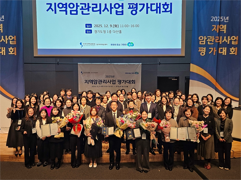 경기도가 주최하고 아주대학교병원 경기지역암센터가 주관한 ‘2025년 지역암관리사업 평가대회’가 12월 9일 경기도청 다산홀에서 개최됐다.이번 대회에는 도내 시군 보건소와 국민건강보험공단 인천경기지역본부·지사 등 지역 암관리사업 기관 실무자들이 참여해 한 해 동안의 우수사례를 공유하고 협력체계를 강화하는 뜻깊은 자리가 마련