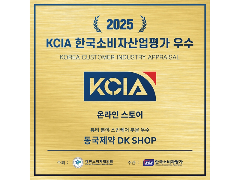 동국제약(대표이사 송준호)이 운영하는 공식 헬스케어몰 ‘DK SHOP’이 ‘2025 KCIA 한국소비자산업평가’에서 온라인 스토어 뷰티 분야 스킨케어 부문 우수업체로 선정됐다.대한소비자협의회가 주최하고 한국소비자평가가 주관하는 KCIA 한국소비자산업평가는 제품 만족도, 배송 만족도, 컴플레인 응대, 전반적 평가 등 항목별