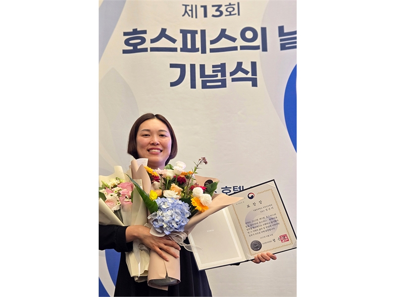 가톨릭대학교 부천성모병원(병원장 박익성) 호스피스완화의료센터의 정은미 간호사가 지난 10월 16일 보건복지부와 국립암센터 중앙호스피스센터가 공동 주관한 ‘제 13회 호스피스의 날 기념식’에서 호스피스 완화의료 유공자로 선정돼 보건복지부 장관 표창을 수상했다.정은미 간호사는 2019년 5월 입원형 호스피스 전담간호사로 첫발