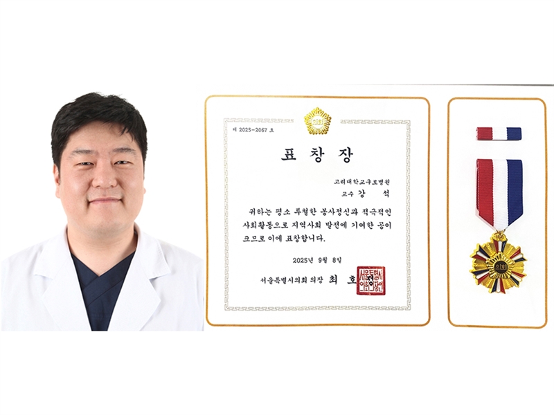 고려대학교 구로병원 재활의학과 강석 교수(사진)가 최근 서울특별시의회로부터 ‘서울특별시의회 의장 표창’을 수상했다.강 교수는 재활의학 전문의로서 만성 근골격계 질환의 첨단 재활치료 기술을 발전시키고, 중증 장애인의 건강권 보장과 삶의 질 향상에 기여한 공로를 인정받아 이번 표창을 수상하게 됐다. 강 교수는 대한재활의학회를