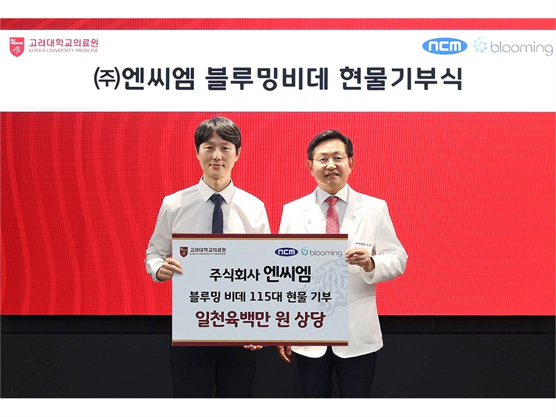 고려대학교의료원(의무부총장 겸 의료원장 윤을식)은 최근 욕실·주방가전 전문기업 ㈜엔씨엠(대표이사 김형중)으로부터 비데 115대를 기부받았다고 전했다. 현물로는 총 1,600만 원 상당이다.기부식은 고려대 메디사이언스파크 본부 5층 회의실에서 열렸으며, 윤을식 의무부총장, 편성범 의과대학장 등 주요 보직자들과 ㈜엔씨엠 김형