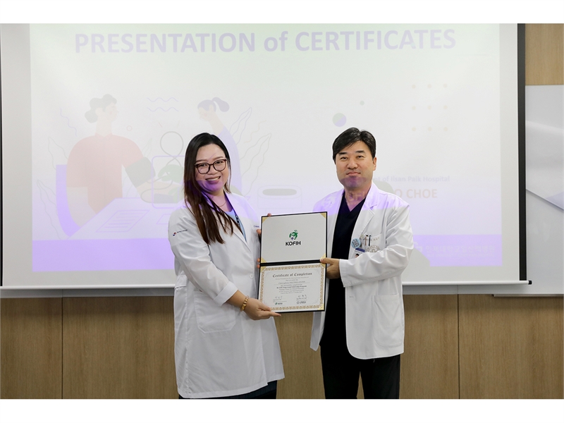 인제대학교 일산백병원(원장 최원주)은 10월 15일(수) 병원 6층 세미나실에서 ‘2024-26년도 이종욱펠로우십 프로그램 임상과정’ 수료식을 개최했다.이번 수료식에는 최원주 일산백병원 원장을 비롯해 김훈 인제대 국제개발협력센터장, 각 진료과 지도교수진, 한국국제보건의료재단(KOFIH) 정혜진 팀장 등이 참석해 연수생들의