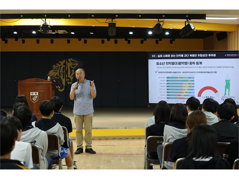 질병관리청이 주관하고 고려대학교 안암병원이 운영하는 중앙손상관리센터(센터장 이성우)가 2025년 10월 1일(수), 고려대학교사범대학부속중학교(교장 송창범) 2학년 학생 216명을 대상으로 ‘내 몸을 위한 건강한 선택’이라는 주제로 찾아가는 청소년 의약품 오남용 예방교육을 실시하였다.