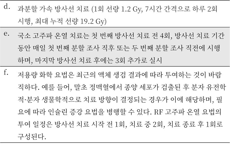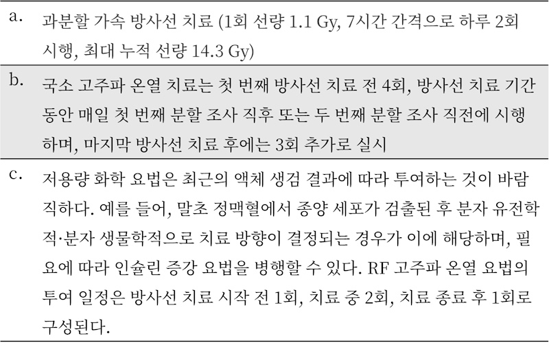 · 온열치료와 화학 요법/방사선치료 간의 상호작용