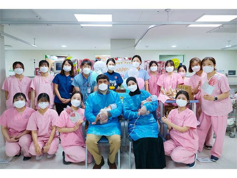 울리씨의 제왕절개 수술을 담당한 산부인과 조금준 교수는 “임신 24주에 출산을 한다는 것은 산모에게도 굉장히 힘든 상황이지만, 태어날 아이의 건강을 고려해야하는 의사입장에서도 매우 힘든 결정이었다”며 “병원 도착 당시 이미 출산이 상당 부분 진행된 상태였기에 응급제왕절개 수술을 시행했고, 이후 신생아중환자실에서 의료진들이 신속하게 아이들을 집중 관리해주셨다. 이러한 긴밀한 협력과 시스템이 뒷받침되었기에 아이들이 건강하게 백일을 맞이할 수 있었다”고 말했다.