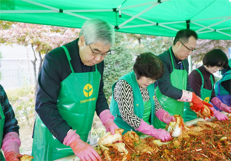 가톨릭대 인천성모병원은 김장 재료 후원과 함께 홍승모 몬시뇰 병원장, 김수현 행정부원장 신부가 직접 행사에 참여해 김장김치 담그기에 동참하며 이웃 사랑을 몸소 실천했다.