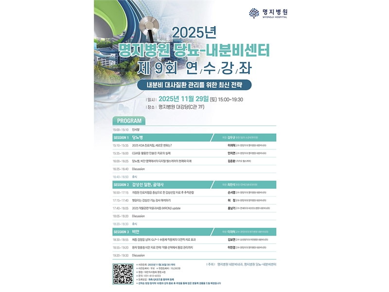 명지병원 당뇨·내분비센터(센터장 이재혁 교수)가 오는 29일 오후 3시부터 병원 C관 7층 대강당에서 2025 연수강좌를 개최한다.