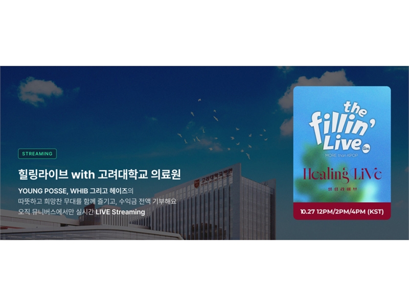 ▲'고려대의료원 잇츠라이브 힐링콘서트'는 MBC '뮤니버스' 플랫폼에서 생중계 됐으며, 수익금은 글로벌 호의사랑 프로젝트에 전액 기부된다.
