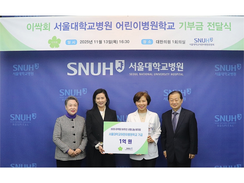 서울대어린이병원은 지난 13일, 이화여대 부속유치원 학부모 봉사회 이싹회로부터 어린이병원학교 후원금 1억원을 전달 받았다고 밝혔다.