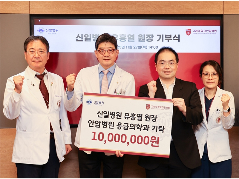 고려대학교 안암병원(원장 한승범)은 신일병원 유홍열 원장으로부터 응급의학 발전을 위한 지정기금 1천만 원을 기부받았다.
