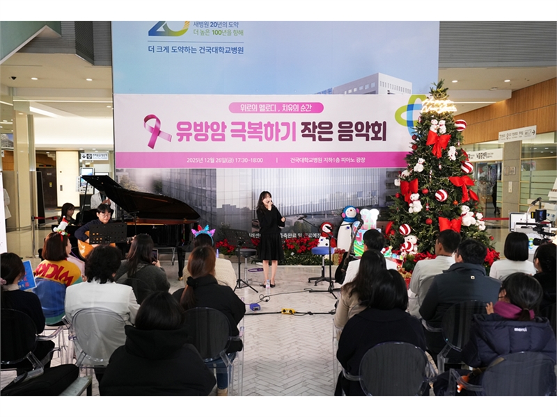 건국대병원 유방암센터(센터장 노우철 교수)는 지난 26일 ‘위로의 멜로디, 치유의 순간 – 유방암 극복하기 작은 음악회’를 개최했다. 이번 행사는 유방암을 극복한 환우와 그 가족을 초청해, 음악을 통해 위로와 희망의 메시지를 전하고자 마련됐다.