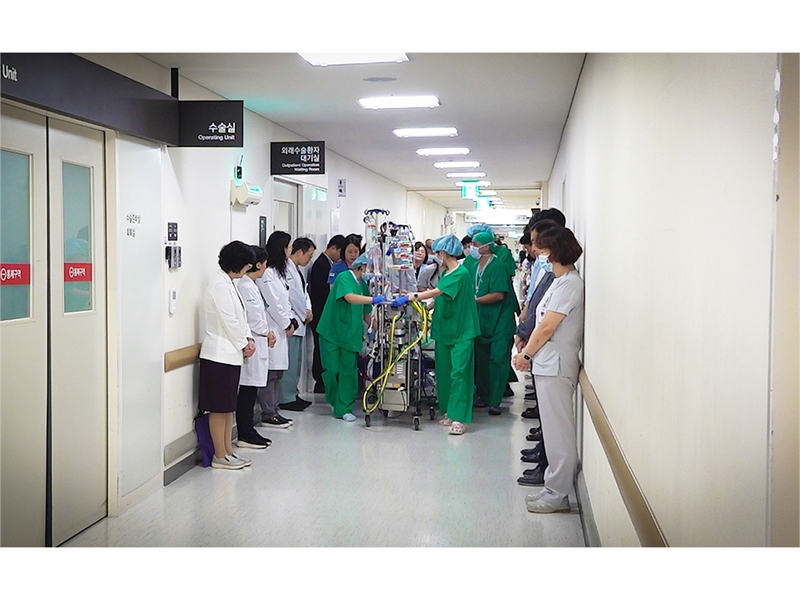 “기증자와 유가족의 숭고한 결정에 감사와 경의를 표합니다.”이대서울병원(병원장 주웅)이 지난 9월 18일 3층 중환자실 입구에서 장기기증자의 마지막 여정을 기리는 ‘울림길’ 의식을 진행했다. 울림길은 장기기증자가 수술실로 이동하는 마지막 순간, 기증자에 대한 경의를 표하며 마지막 여정에 예의를 표하는 의식으로 해외에서