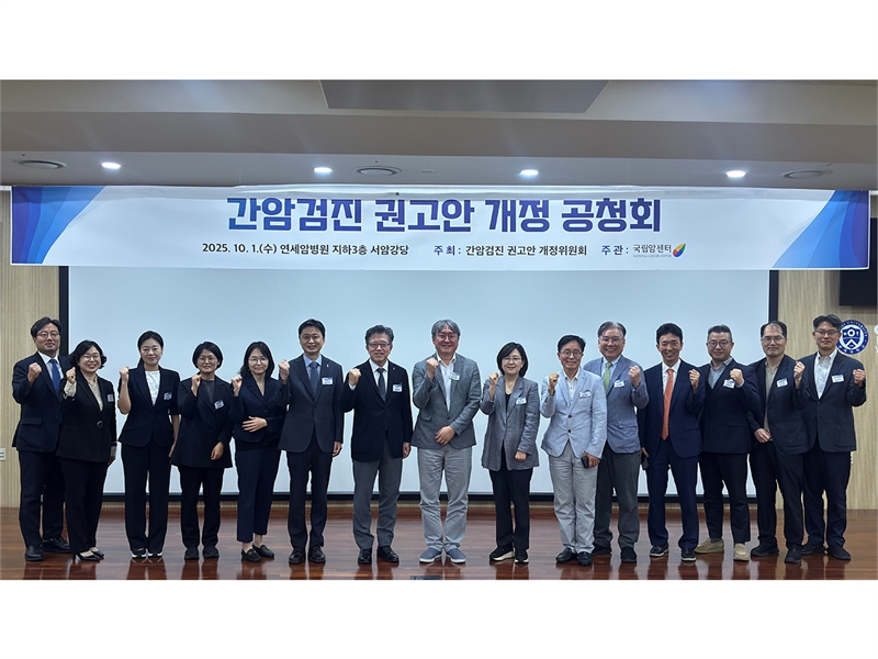 국립암센터(원장 양한광)는 10월 1일(수) ‘국가 간암검진 권고안 개정 공청회’를 열고, 국제 표준 방법론을 적용해 10년 만에 개정된 국가 간암검진 권고안을 공개·검토했다.국가 간암검진 권고안은 2002년 국립암센터와 관련 학회가 공동으로 처음 개발한 이후, 2015년 한 차례 개정됐으며, 이번 개정은 10년 만에 이