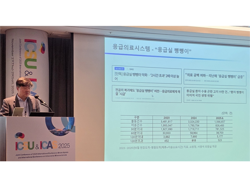대한뇌졸중학회(회장 한림의대 황성희, 이사장 성균관의대 김경문)는 International Conference Stroke Update & International Conference on Intracranial Atherosclerosis 2025(ICSU & ICAS 2025) 정책 세션에서 24시간 365일 뇌졸중