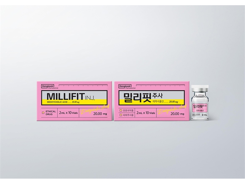 동국제약(대표이사 송준호)이 9월 29일 턱밑 지방 개선 주사제 ‘밀리핏 주사’를 출시한다.밀리핏 주사는 성인의 중등증-중증의 돌출되거나 과도한 턱밑 지방 개선을 목적으로 개발된 주사제이다. 특히, 주성분인 데옥시콜산(Deoxycholic acid, DCA)은 지방세포막을 파괴하여 비가역적으로 지방세포 사멸을 유도하며,