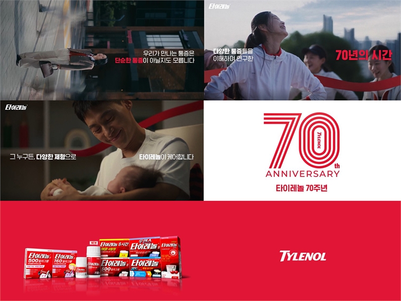 한국존슨앤드존슨판매 유한회사(이하 켄뷰, 대표이사 백준혁)의 세계 판매 1위 진통제 타이레놀이 출시 70주년을 맞아 전 제품 라인업을 앞세운 신규 브랜드 캠페인을 15일부터 전개한다고 16일 밝혔다.타이레놀은 이번 캠페인을 통해 알약(정제)부터 파우더(산제), 시럽(현탁액)에 이르는 폭넓은 제품군을 소개하며, ‘다양한 통
