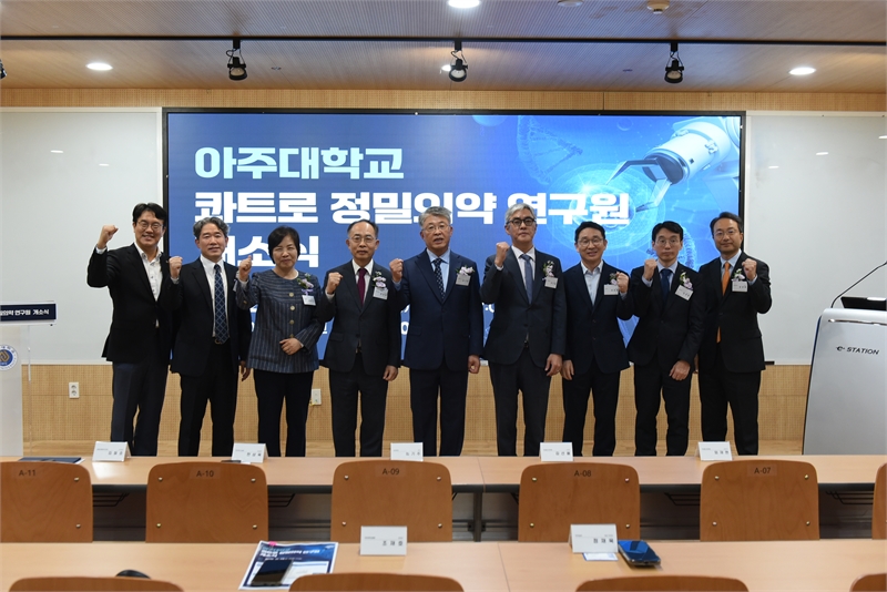 아주대학교는 10월 23일(목) 오후 2시 30분, 혜강관 209호에서 ‘콰트로 정밀의약 연구원(Quattro Precision Therapeutics Institute, 이하 QPT)’ 개소식을 개최했다. 이번 개소식은 AI(인공지능)와 데이터 기반 정밀의학 및 첨단 융복합기술을 선도할 대학 부설 연구 거점의 출범을 알