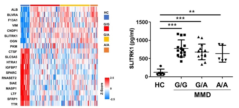 연구팀은 모야모야병 환자군(104명)과 대조군(14명)의 뇌척수액 내 단백체를 포괄적으로 분석했다. 그 결과 총 2400여개의 단백질이 확인됐으며, 그중 8개가 환자군에서 상대적으로 발현 강도가 높았다. 이 단백질들을 대상으로 한 효소면역분석에서 특히 신경세포 성장과 연관된 ‘SLITRK1’의 농도가 높게 나타났다. 이는 신경세포가 모야모야병 진행 기전에 영향을 줄 수 있음을 시사한다.