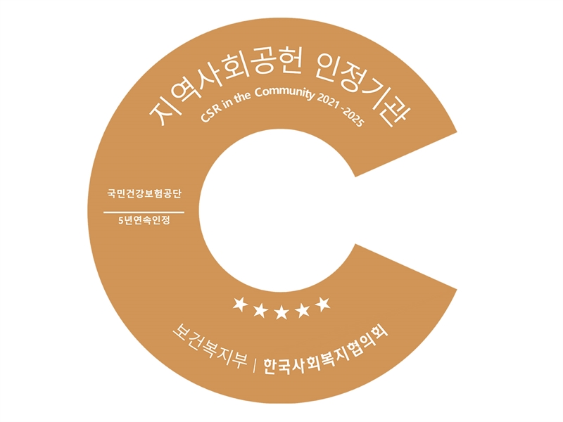 ‘지역사회공헌 인정제’는 기관이 보유한 인적‧물적 자원을 활용하여 비영리단체와의 협력을 통해 지역사회의 복지 증진에 공헌하는 기관을 인정해 주는 제도로 공단은 지난 2021년부터 5년 연속으로 지역사회공헌 인정기관으로 선정되었다.