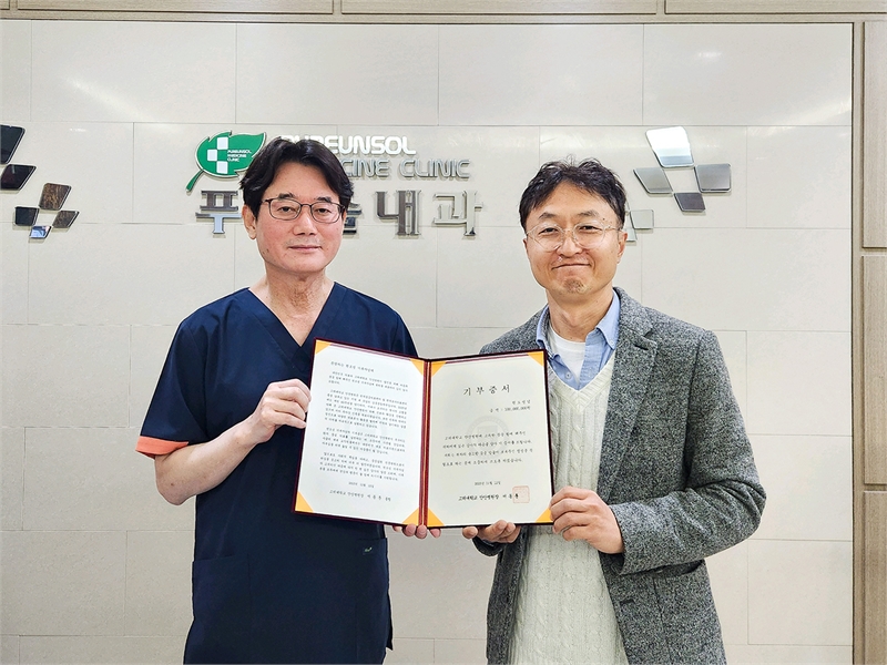 고려대학교 안산병원(원장 서동훈)이 푸른솔내과의원 권오성 원장으로부터 신장내과 발전을 위한 지정 기금 2천만 원을 기부 받았다. 이번 기부로 권 원장이 병원에 전달한 누적 기부액은 총 1억 원에 달한다.