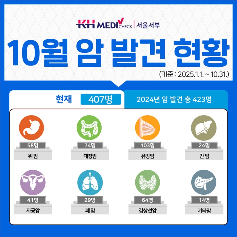 ▲2025년도 1월부터 10월까지 암 발견 현황